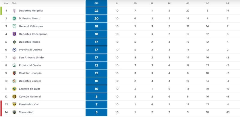 Dicho esto, el gran ganador fue Deportes Concepción, que le ganó a domicilio por la cuenta mínima al colista Trasandino y escaló hasta el tercer lugar, a solo cuatro unidades de Melipilla. El León de Collao iguala esa ubicación con General Velásquez, que en el arranque de la fecha le sacó un empate a Fernández Vial en el Biobío.