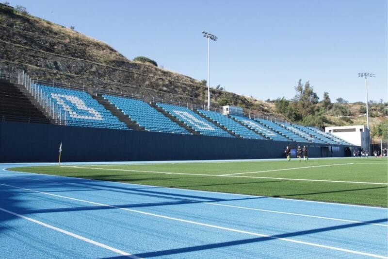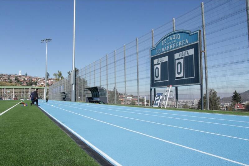 El nuevo Municipal de Barnechea es un chiche. Cambio total de la cancha sintética, una nueva iluminación LED con estándares FIFA (1100 Lux), recambio de butacas y construcción de facilidades para atletismo, como una pista de recortán y un foso olímpico son las mejorías a las que fue sometido el recinto.