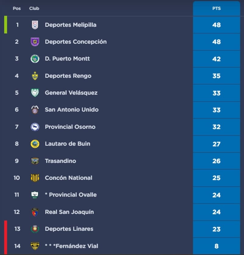 Fue Deportes Concepción el que cerró la jornada dominical con un importante triunfo por 2-0 ante Trasandino de Los Andes. El León de Collao quedó con 48 unidades, las misma que Deportes Melipilla, pero que por diferencia de gol quedan segundos.