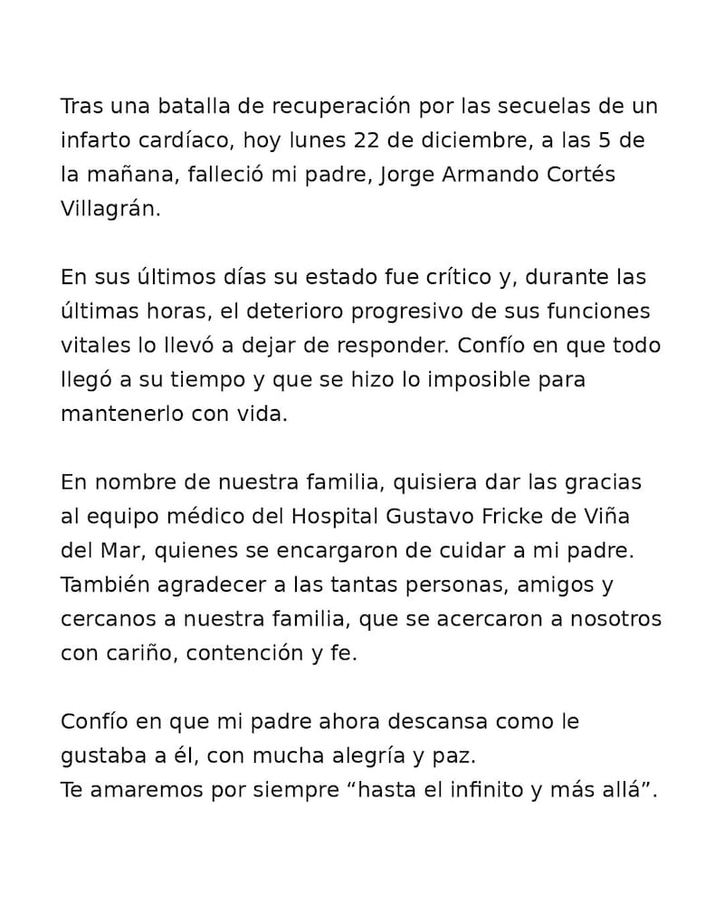 La familia de Jorge Cortés anunció el fallecimiento del ex portero