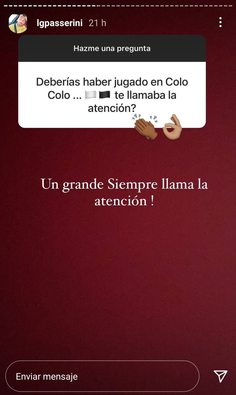 A través de su cuenta de Instagram, el exgoleador de Palestino le propuso a sus seguidores realizarle preguntas para que luego él las fuera respondiendo, ante lo cual un fanático albo le escribió "deberías haber jugado en Colo Colo. ¿Te llama la atención?".
