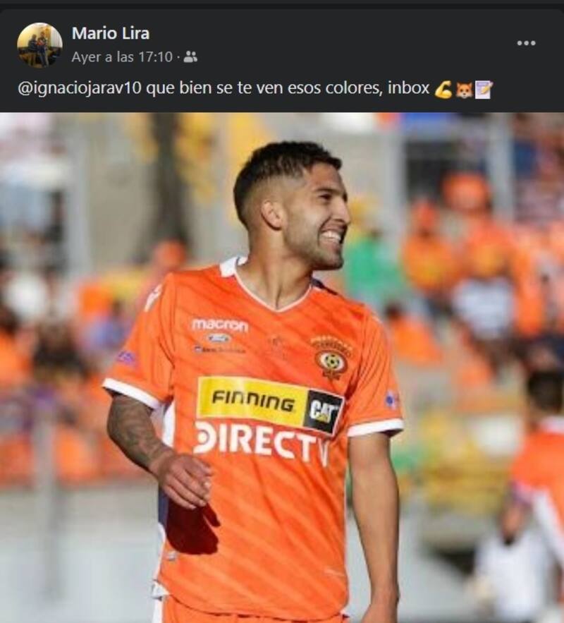 A través de su cuenta de Facebook, el vicepresidente de los "Mineros", Mario Lira, compartió una foto de Ignacio Jara cuando aún jugaba en el cuadro calameño y a ello le agregó el mensaje "que bien se te ven esos colores, inbox", dando a entender que ya habrían existido los primeros acercamientos para repatriar al volante creativo.