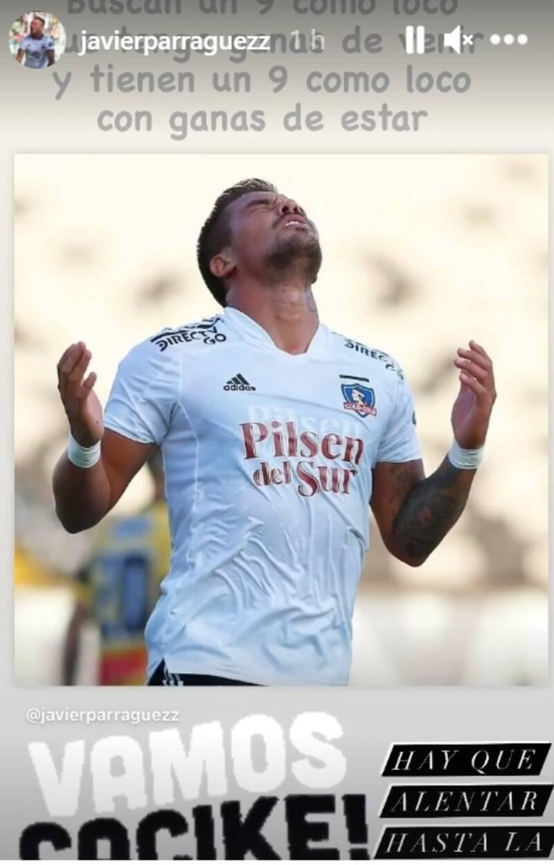 En este contexto y conociendo que desde la dirigencia y el cuerpo técnico las intenciones están puestas en contratar otro delantero que llegue a potenciar la ofensiva junto a Iván Morales, fue el mismo Parraguez, mediante una historia de Instagram, el que le envió un directo mensaje al entrenador y a la directiva.