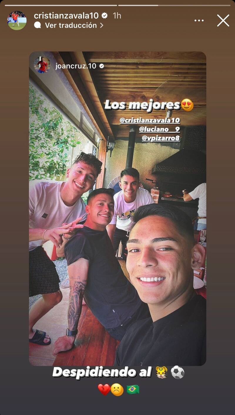 Así lo exhibió Joan Cruz en Instagram. El joven volante de Colo Colo -que tampoco está siendo considerado-, subió una historia en la que se aprecia la reunión con su participación en conjunto a Luciano Arriagada, Cristián Zavala y Vicente Pizarro, con la consigna: "Los mejores" a lo que el otrora Deportes Melipilla agregó "Despidiendo al Tigre".