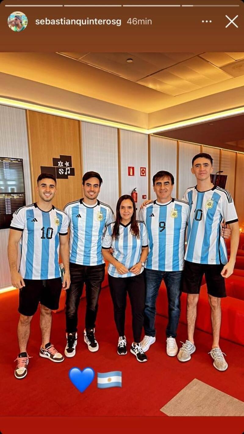 Quinteros, en su llegada al país del Medio Oriente, posó en una fotografía familiar que subió uno de sus hijos a redes sociales, donde el entrenador del "Cacique" aparece con la camiseta número "9" de la "Albiceleste".