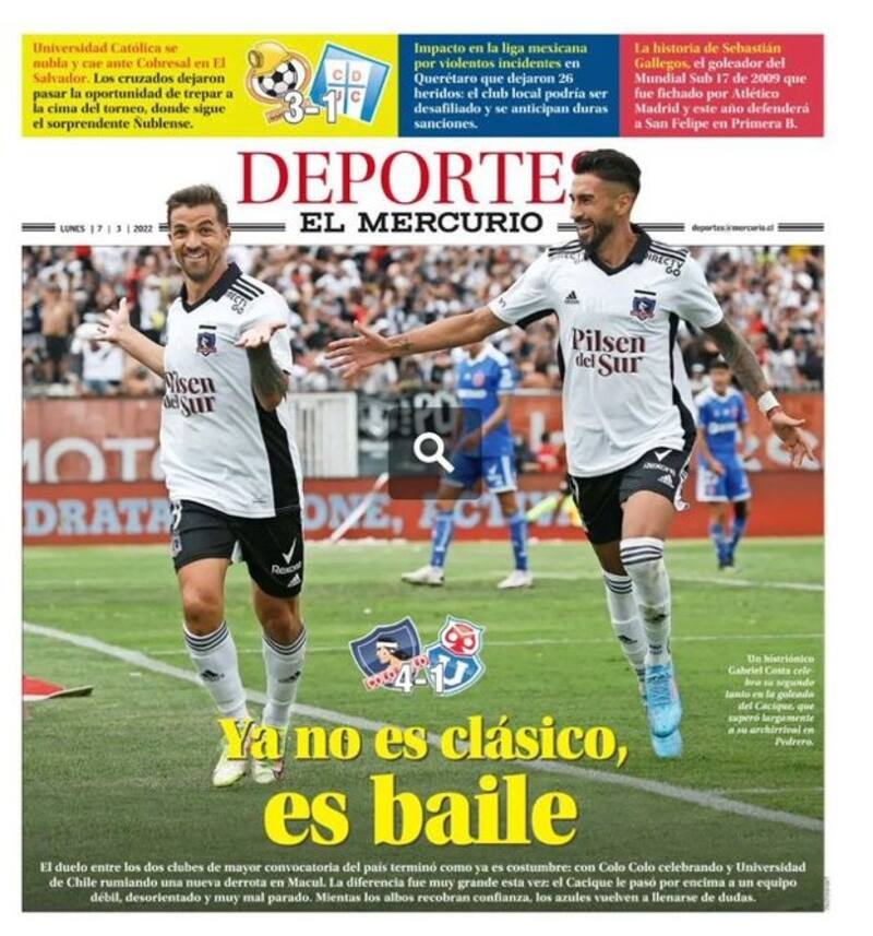 En esta oportunidad, El Mercurio sorprendió con una picante portada, que seguramente traerá más de algún comentario en redes sociales, considerando el estilo que siempre ha presentado este diario a lo largo de los años. "Ya no es clásico, es baile", tituló el matutino, con una foto de los albos celebrando un gol.