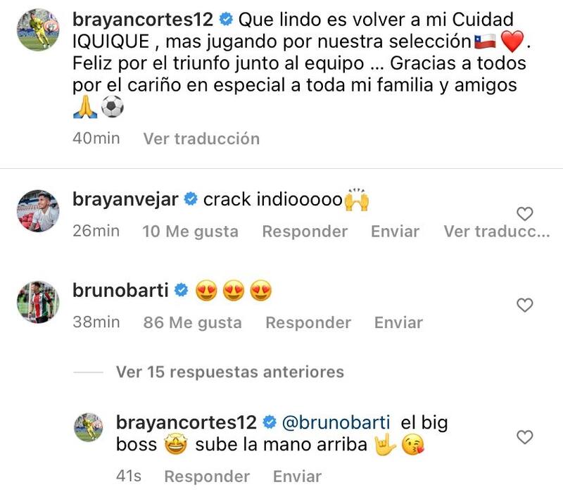 La Roja Sub 23 logró un triunfo por 1-0 sobre Perú en el amistoso que se jugó en la ciudad de Iquique y dos valores destacados del equipo comandado por Eduardo Berizzo fueron Brayan Cortés y Bruno Barticciotto, quienes festejaron su presentación y victoria en redes sociales.