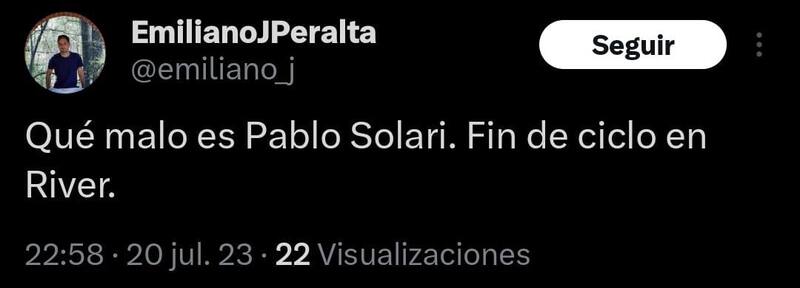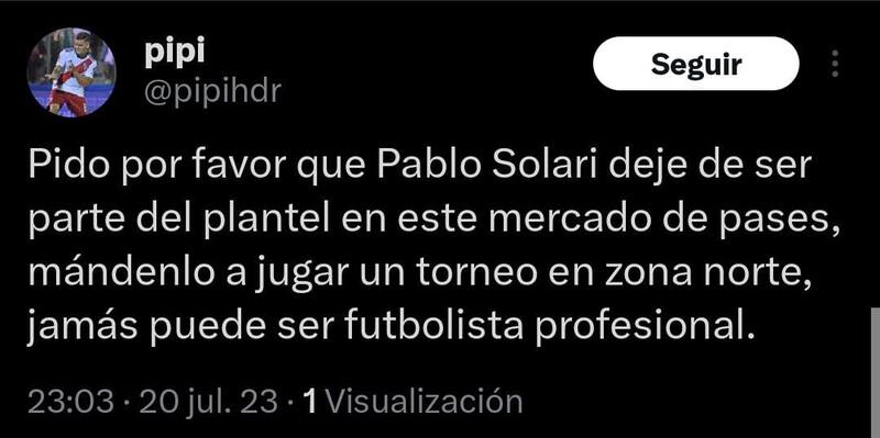 River Plate viene de coronarse campeón de la Liga Argentina, luego de una temporada fantástica, pero la alegría no duró mucho. Este jueves en el marco de la Copa Argentina se enfrentaron el cuadro dirigido por Martín Demichelis y Talleres de Córdoba, duelo que terminó en derrota por 1-0 para el Millonario, y se desataron las críticas a Pablo Solari.