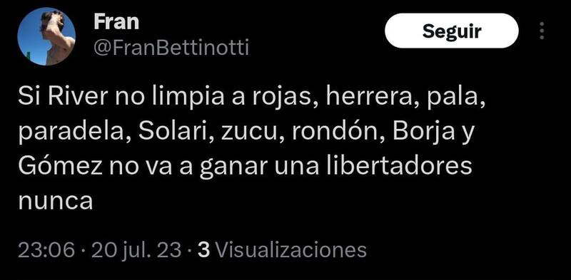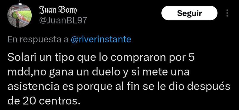 Lo que más se repitió dentro de los descargos de la hinchada millonaria en Twitter es que su ciclo en el club ya llegó a su fin, indicando que este debería ser su último año y debe ser vendido lo antes posible para recuperar la inversión.