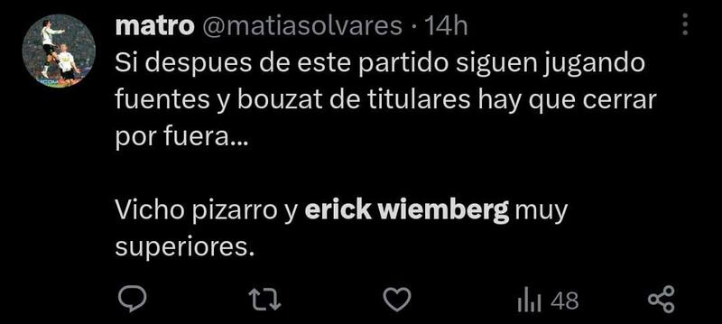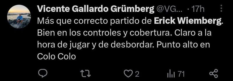 Cabe destacar que en los últimos encuentros de Colo Colo el titular en esa posición era Agustín Bouzat, pero una serie de errores cometidos y este “renacer” de Erick Wiemberg, lo comienzan a desplazar del once estelar de Gustavo Quinteros y podría ser relegado a la banca.