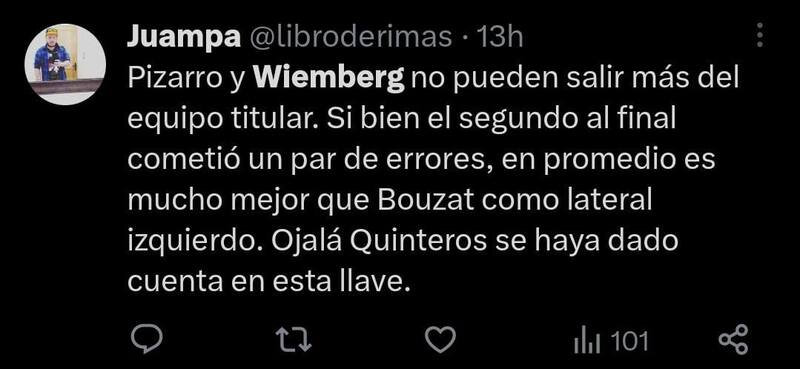 Los comentarios que recibió Wimberg en “X” -ex Twitter- dan cuenta de su buen rendimiento. Fue tanto, que algunos lo compararon con Alphonso Davies, el lateral del Bayern Munich.