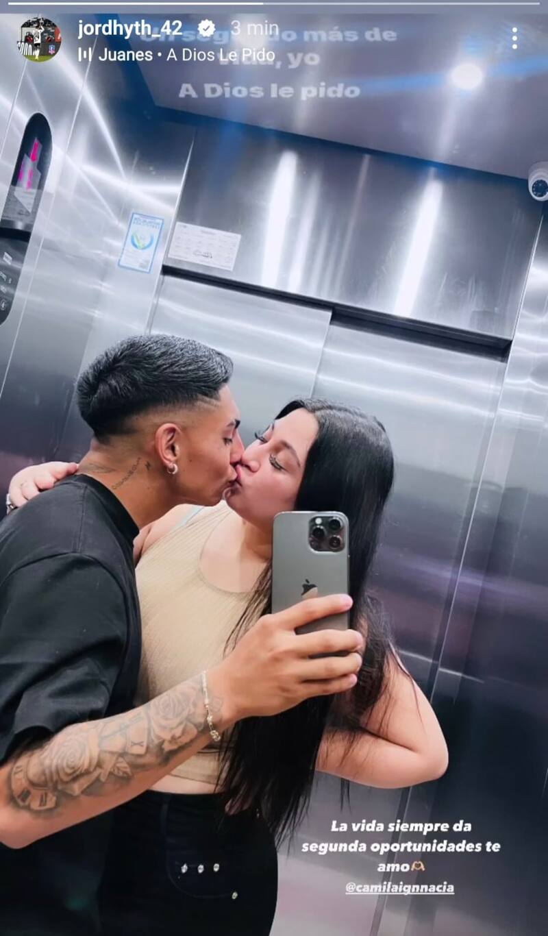 En la imagen, subida como historia en esa red social, Thompson aparece besándose con Sepúlveda dentro de un ascensor, con la leyenda “La vida siempre da segundas oportunidades; te amo”.