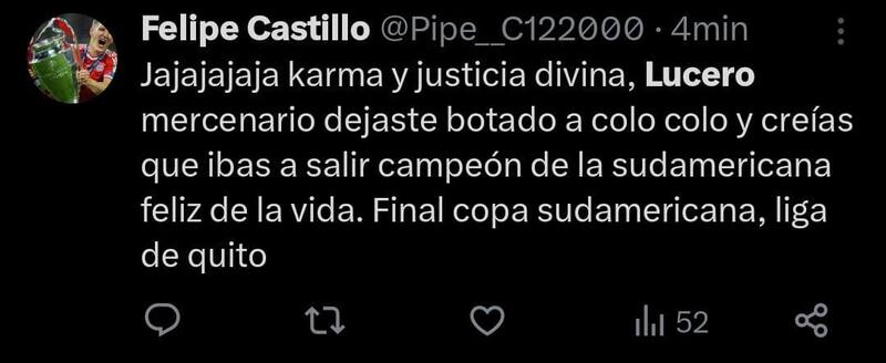 Juan Martín Lucero tiene una historia de amor y odio con Colo Colo, pero sobre todo con los hinchas albos, ya que no les gustó que el delantero argentino dejara el club en la forma que la hizo. Es por lo mismo que esta derrota del Fortaleza en la final de la Copa Sudamericana ante Liga de Quito, trajo una serie de burlas.