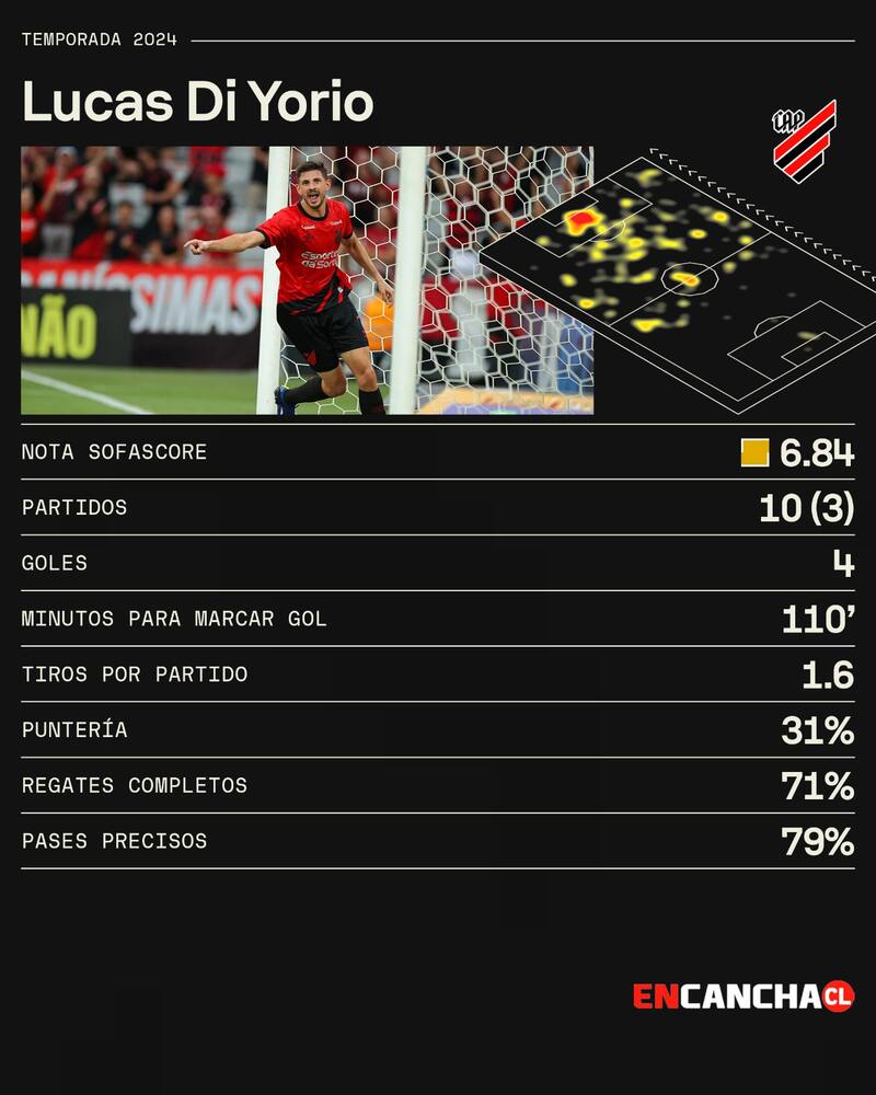 Los números de Lucas Di Yorio en Athletico Paranaense