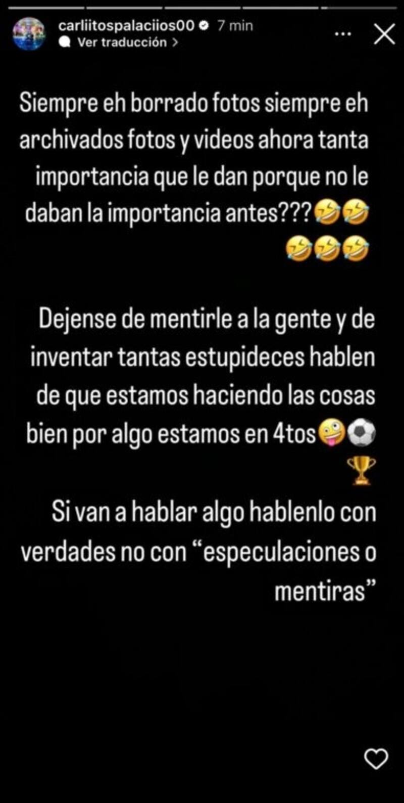 Mediante la misma red social, y luego de un día completo de silencio, Carlos Palacios decidió alzar la voz para referirse a la situación, mostrándose bastante molesto por esta “polémica” que se armó en torno a su figura.