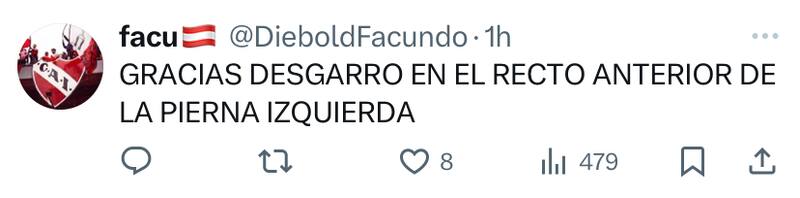 Diversos medios partidarios de Independiente de Avellaneda publicaron el parte médico del zurdo de 35, quien será baja entre dos a tres semanas en el equipo de Julio Vaccari, razón suficiente para que los hinchas del Diablo Rojo celebraran con todo su ausencia. Insólito...