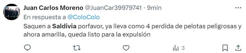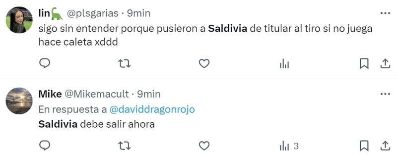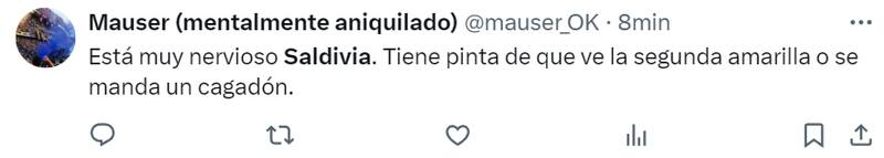 En redes sociales, precisamente en X, los cibernautas se cansaron de Saldivia y pidieron que dejara el gramado por Emiliano Amor, que es quien venía ocupando ese puesto en los últimos partidos.