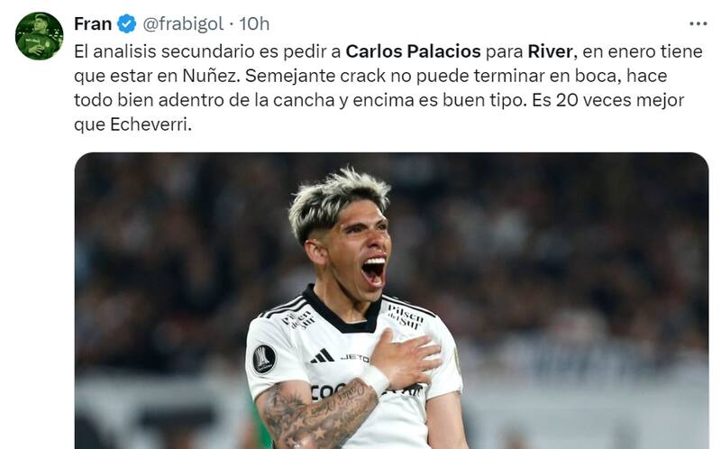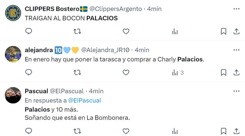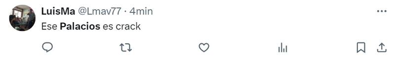 En X (anteriormente Twitter) todos los comentarios del partido iban en dirección hacia Carlos Palacios. Los fanáticos de Boca Juniors le exigían a Juan Román Riquelme que lo fichara en enero, argumentando que “tiene todo para romperla en Boca”.