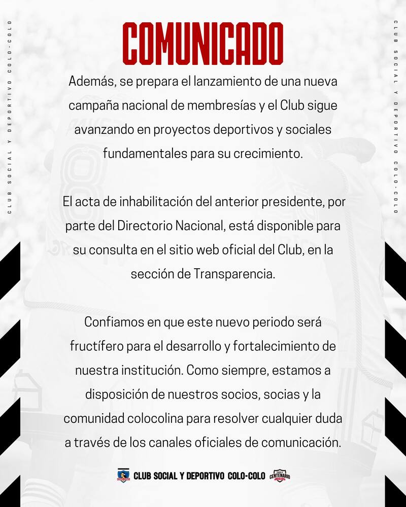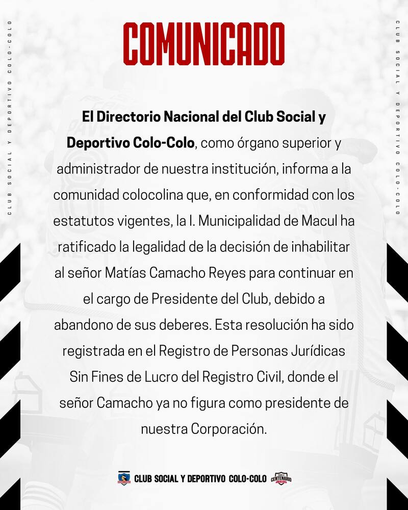 El comunicado del CSD Colo Colo sobre Matías Camacho