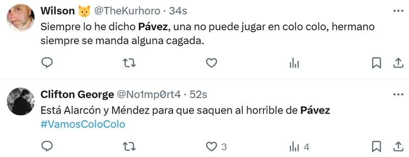 “Es horrible”, “no puede ser el capitán de Colo Colo”, “qué tiene Almirón con este cono”, entre otros comentarios emitidos por los hinchas en la red social X.