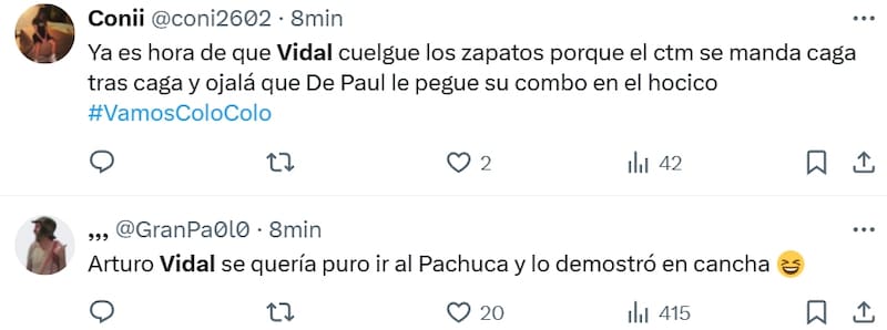 “Es la manzana podrida”, “tenía que irse al Pachuca”, “Nadie está por sobre Colo Colo”, fueron algunos de los comentarios de los hinchas albos en X.