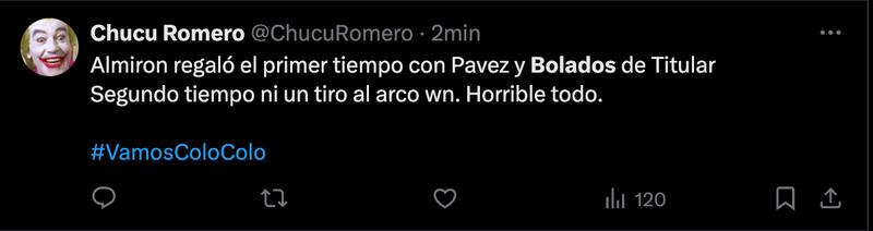 El delantero albo dejó su lugar al juvenil Francisco Marchant, quien, según los hinchas de Colo Colo, debió haber sido titular desde el inicio del compromiso en lugar de Bolados.