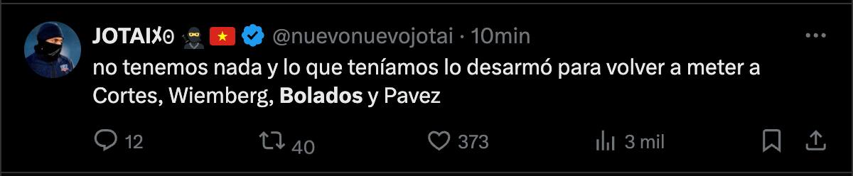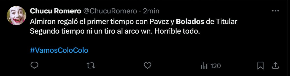 El delantero albo dejó su lugar al juvenil Francisco Marchant, quien, según los hinchas de Colo Colo, debió haber sido titular desde el inicio del compromiso en lugar de Bolados.