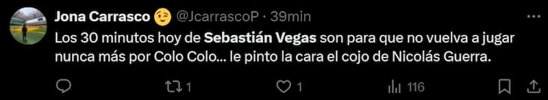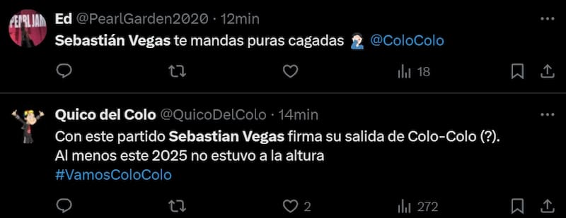Los hinchas colocolinos explotaron en redes sociales y no perdonaron a Sebastián Vegas. Tanto así, que unos pedían que dejara el club hoy mismo.