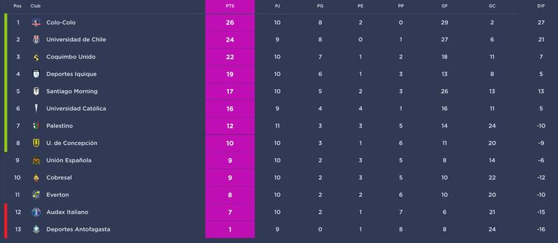 Con estos resultados, Colo Colo y la U quedaron separados en la tabla por apenas dos puntos, pero las azules tienen un compromiso menos.