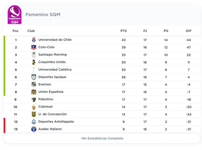 Tabla de Posiciones - Campeonato Nacional Femenino - Fecha 18