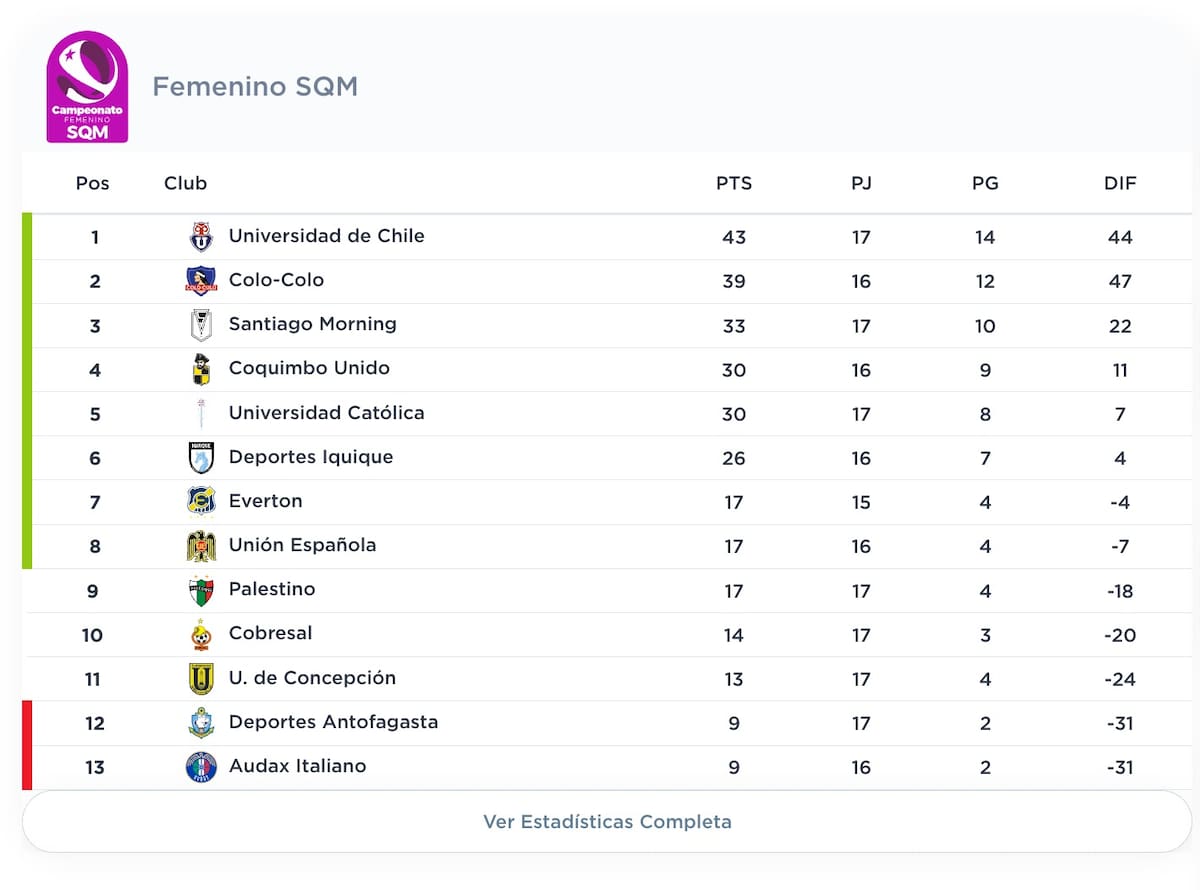 Este domingo finalizó la fecha 18 del Campeonato Nacional Femenino con un único partido: Colo Colo consiguió una cómoda victoria por 4-1 sobre Audax Italiano, con lo que le mete presión al líder, Universidad de Chile. que el sábado derrotaron a Universidad Católica por 5-1, en una nueva edición del Clásico Universitario.