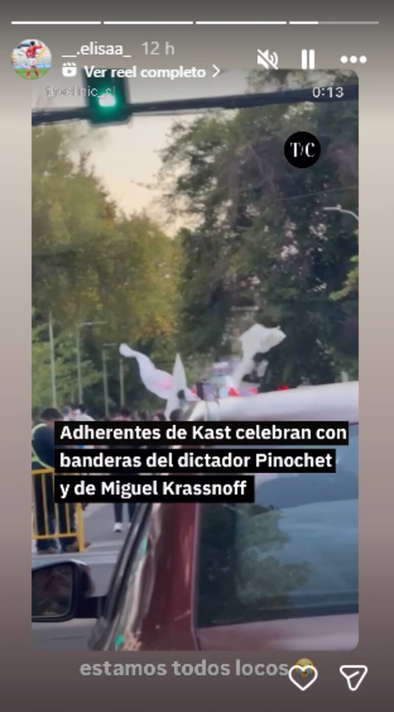 Finalmente, la mundialista en Francia 2019 Elisa Durán hizo hincapié en que durante las celebraciones por el triunfo de Kast se vieron banderas del dictador Augusto Pinochet y del criminal condenado Miguel Krasnoff.