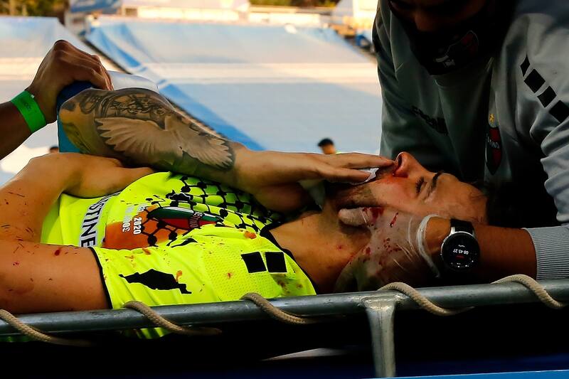 El fuerte rodillazo de Fernando Zampedri a Federico Lanzillotta en el inicio del duelo entre la UC y Palestino dejó unas impactantes imágenes, debido a que el arquero de los árabes perdió varias piezas dentales y tuvo que ser enviado a un centro médico de forma inmediata.