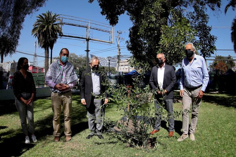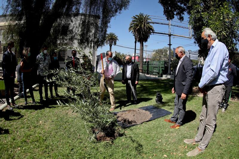En el evento también estuvo el embajador de Palestina en Chile, Imad Jadaa y el presidente de la Comunidad Palestina, Maurice Khamis, quienes procedieron a plantar un olivo en los jardines del edificio municipal.