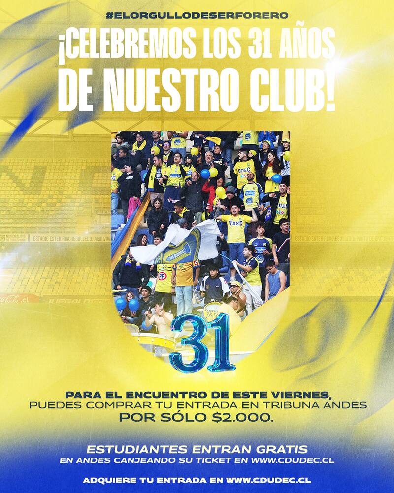 Por eso, pondrán precios absolutamente “populares” para que sus fanáticos los acompañen, con entradas a Tribuna Andes por solo 2 mil pesos. Además, los estudiantes de la Casa de Estudios tendrán ingreso liberado a ese mismo sector del estadio, canjeando su ticket en www.cdudec.cl a condición de mostrar su TNE.