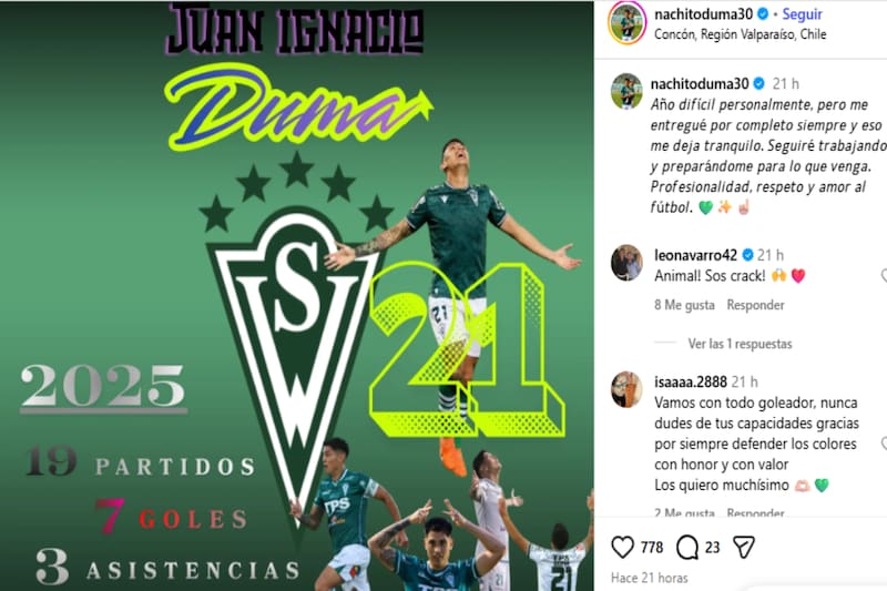 “Año difícil personalmente, pero me entregué por completo siempre y eso me deja tranquilo. Seguiré trabajando y preparándome para lo que venga. Profesionalidad, respeto y amor por el fútbol”, fue el mensaje del delantero, que acompañó con sus estadísticas del año en el Puerto.