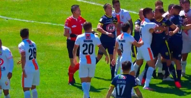 Sin embargo, a los 36', Eric Godoy y Óscar Salinas protagonizaron una fuerte pelea que provocó una batalla campal en El Salvador. El incidente obligó al árbitro Cristián Droguett a expulsarlos del encuentro antes del término del primer tiempo.