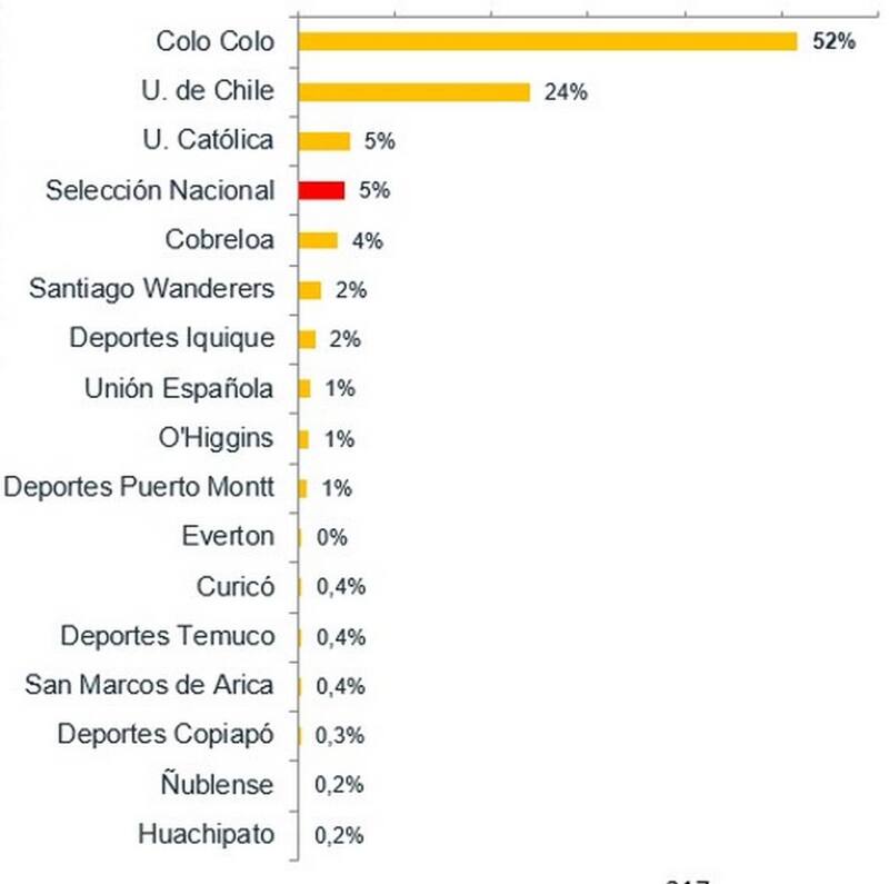 El estudio reveló que solo un tercio de los encuestados se declaró fanático de algún club del fútbol chileno. El 52% de los migrantes consultados confesó que es hincha de Colo Colo.