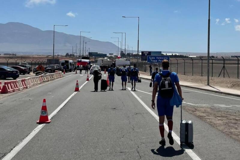 Por esto razón, los dirigidos por Juan Domingo Tolisano incluso debieron hacer a pie parte del trayecto, ya que no pudieron avanzar en autobús desde el peaje de acceso al terminal aéreo, tal como se apreció en una fotografía que compartió Cristián Rojas, capitán de Antofagasta, en sus redes sociales.