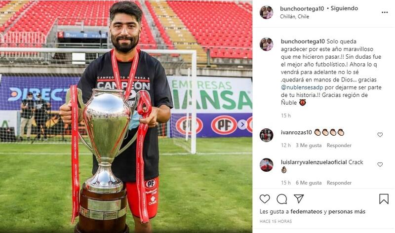 "Solo queda agradecer por este año maravilloso que me hicieron pasar!! Sin dudas fue el mejor año futbolístico! Ahora lo que vendrá para adelante no lo sé, quedará en manos de Dios… gracias Ñublense por dejarme ser parte de tu historia!! Gracias región de Ñuble", indicó el trasandino.