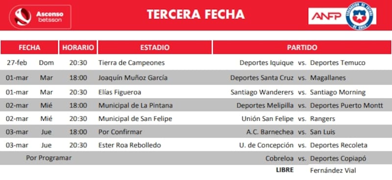 Mientras que el primer equipo que quedará libre será Deportes Copiapó, ya que el "León de Atacama" viene con menos tiempo de preparación tras perder la Promoción ante Huachipato hace poco más de una semana.