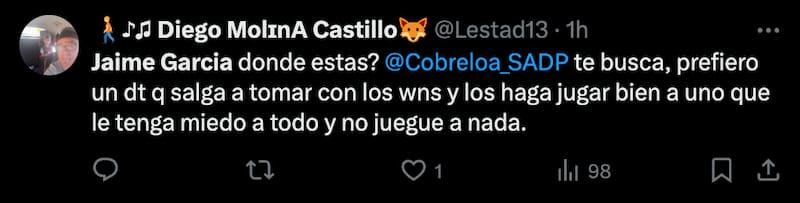 “Busquen el número de Jaime García”, “Llegará Jaime García”, son algunos de los comentarios que se pueden apreciar en las redes sociales con respecto al estratega nacional.