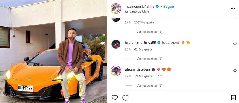 Este sábado Isla publicó una foto en su Instagram, en donde algunos excompañeros le comentaron. Uno de los que se hizo presente fue Braian Martínez, con quien compartió camarín el año pasado en Independiente de Avellaneda.