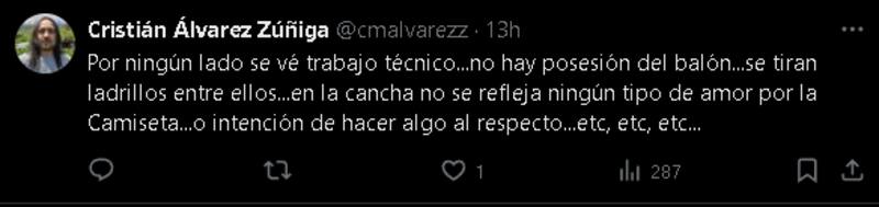 “Ni la sombra de la sombra del Cobreloa de los ‘80s”, “No merecen llevar esa camiseta”, “Son más malos que la Selección Chilena” y “Solo un milagro nos salva” fueron algunos de los comentarios que dejaron los hinchas en la publicación en X del final del partido ante Audax.