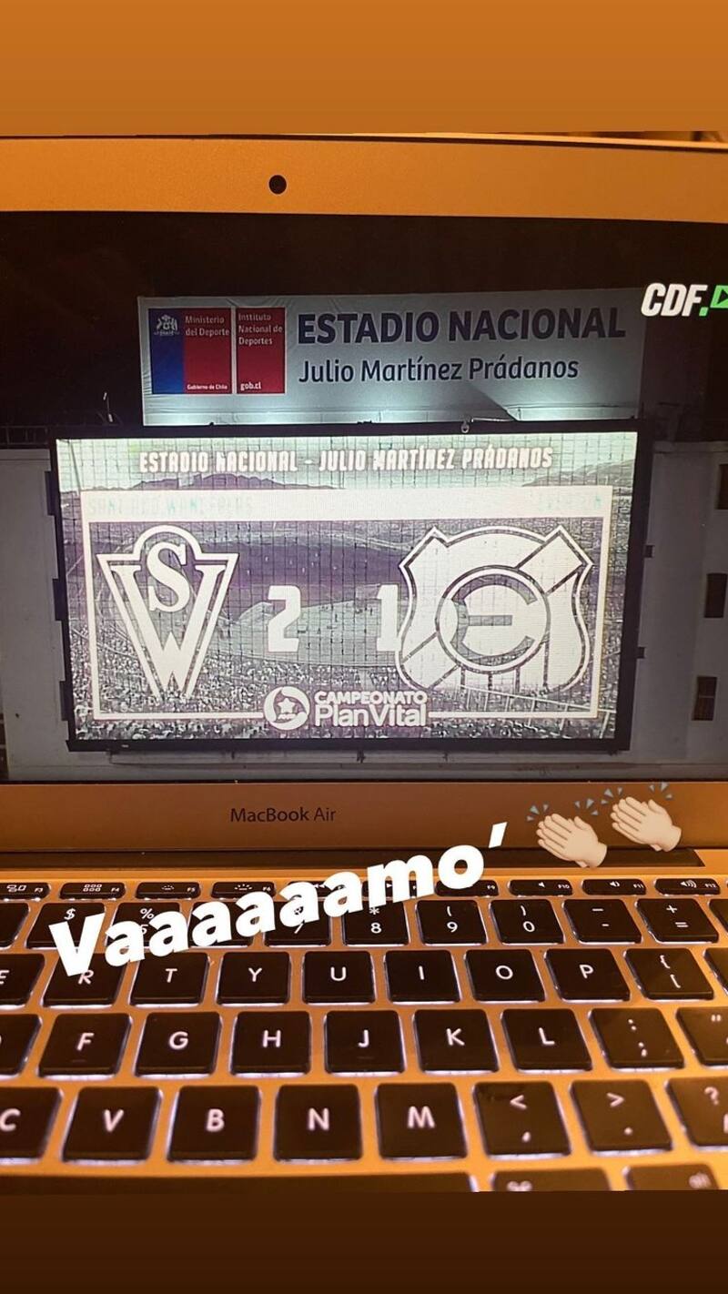 A través de su cuenta de Instagram, el zurdo subió una historia con una foto del marcador en el Estadio Nacional, donde escribió "Vaaamos" y unos emoticones de aplauso.
