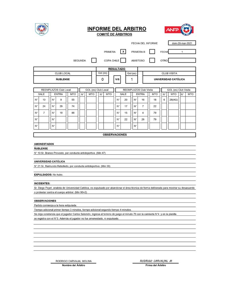 Revisa acá el informe arbitral de Rodrigo Carvajal: