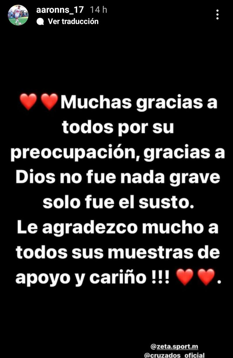Si bien ambos jugadores fueron sometidos a exámenes preventivos, los cuales salieron todos favorables, ninguno había sacado el habla hasta hoy. El canterano decidió referirse al tema en su cuenta de Instagram, llevándoles algo de tranquilidad a los "Cruzados".