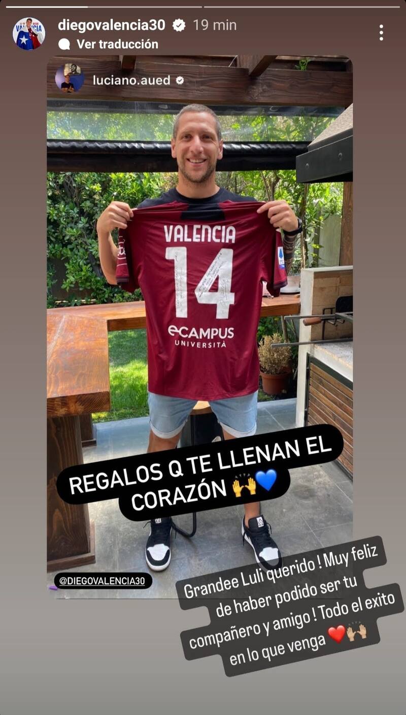 .El argentino tuvo la respuesta de Diego Valencia, quien agradeció por sus años de amistad. "Muy feliz de haber podido ser tu compañero y amigo. Todo el éxito en lo que venga", afirmó el ex jugador de la Universidad Católica.