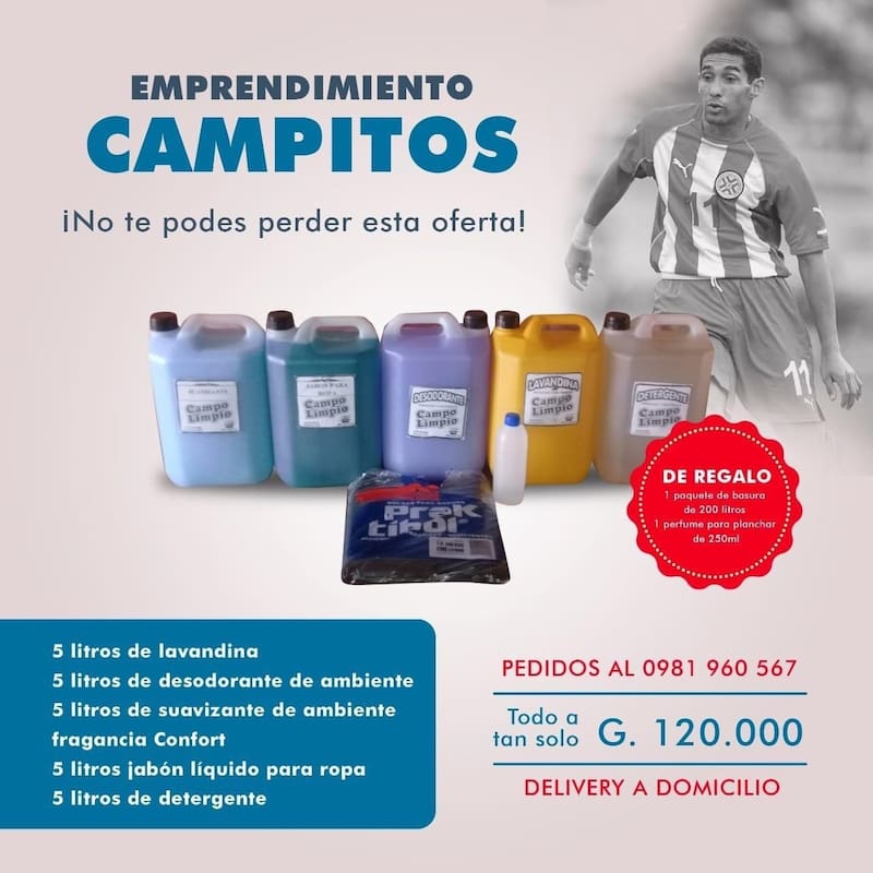 El futbolista hizo noticia hace unos años, ya que parece que dejó atrás el fútbol y comenzó con un emprendimiento de productos de limpieza. "Cinco litros de lavandina, como de desodorante y también suavizante de ambiente, misma cantidad de jabón líquido y de detergente todo a tan solo 120.000 guaraníes", era parte del afiche de los productos llamados "Emprendimiento Campitos".
