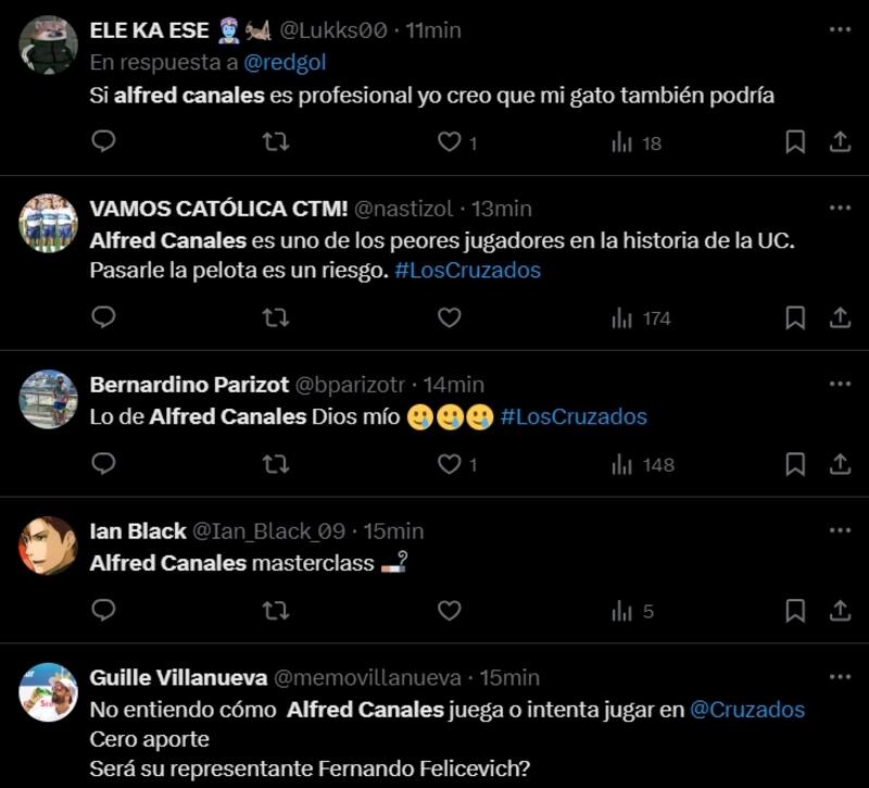 Contra Colo Colo el volante sumó varios errores, lo que desató la tirria de los hinchas Cruzados en redes sociales. Fue en X (anteriormente Twitter) que los comentarios no se hicieron esperar por su desempeño, pidiendo que el técnico lo cambie, incluso algunos pidiendo su salida del club.